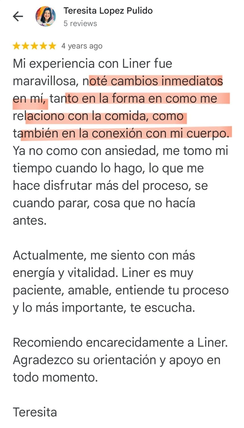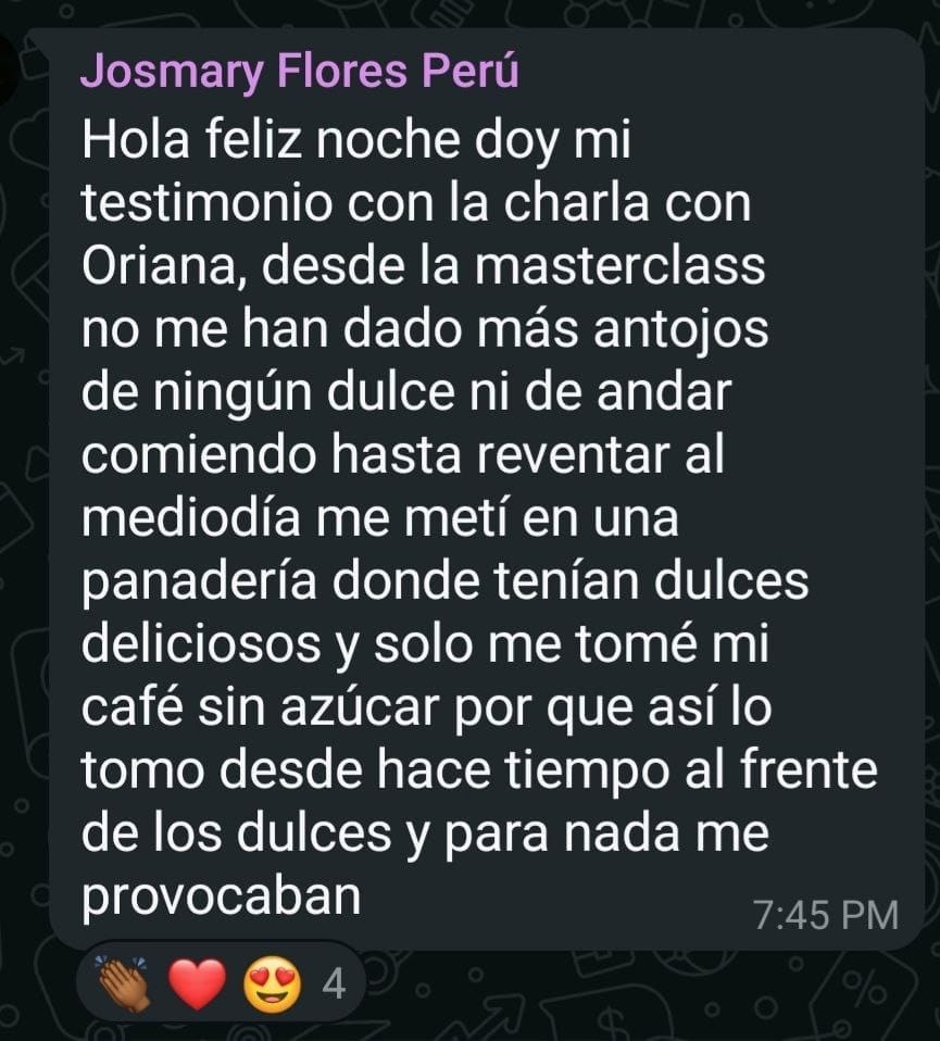 Lo sientes desde el primer momento: más calma, más claridad y una relación distinta con ese alimento. El cambio interno se nota en 2 momentos: 1 al final de la sesión ( si tu antojo es fijo de aquí nadie sale sin sentir que no tiene ese antojo) y 2 en tu próximo encuentro con ese antojo que te atormenta.